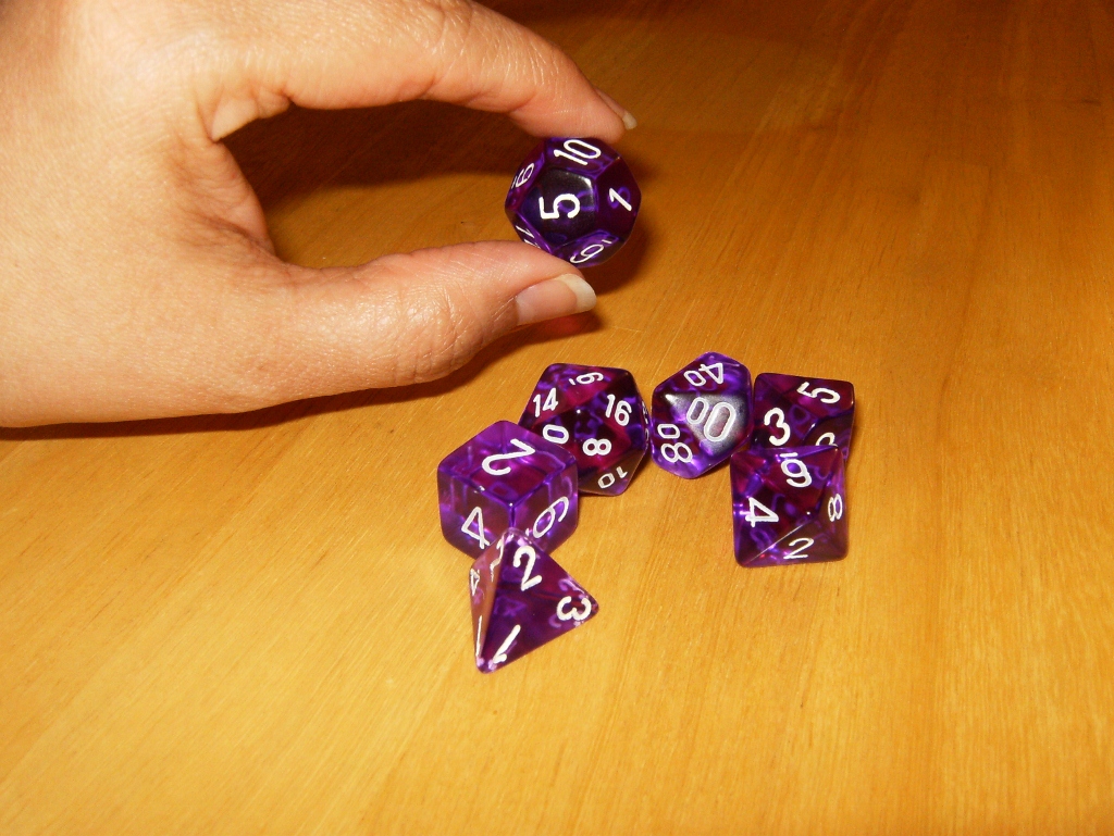 Participating on Gothridge Manor's "Show me your dice marathon". My husband got me in to playing D&D and this is my first set of dice.